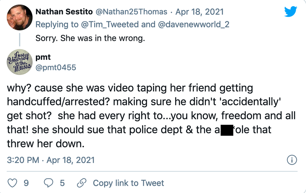Moments later in the viral footage, a slender, blonde teenager entered the frame holding out her cellphone in an attempt to film the interaction.