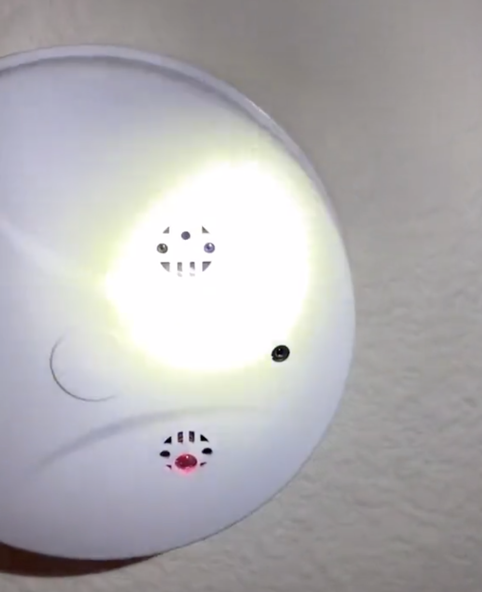 "Take this fire alarm, for instance. It is placed right above the bed. One way to see if the device is a camera is to shine a bright light at it."