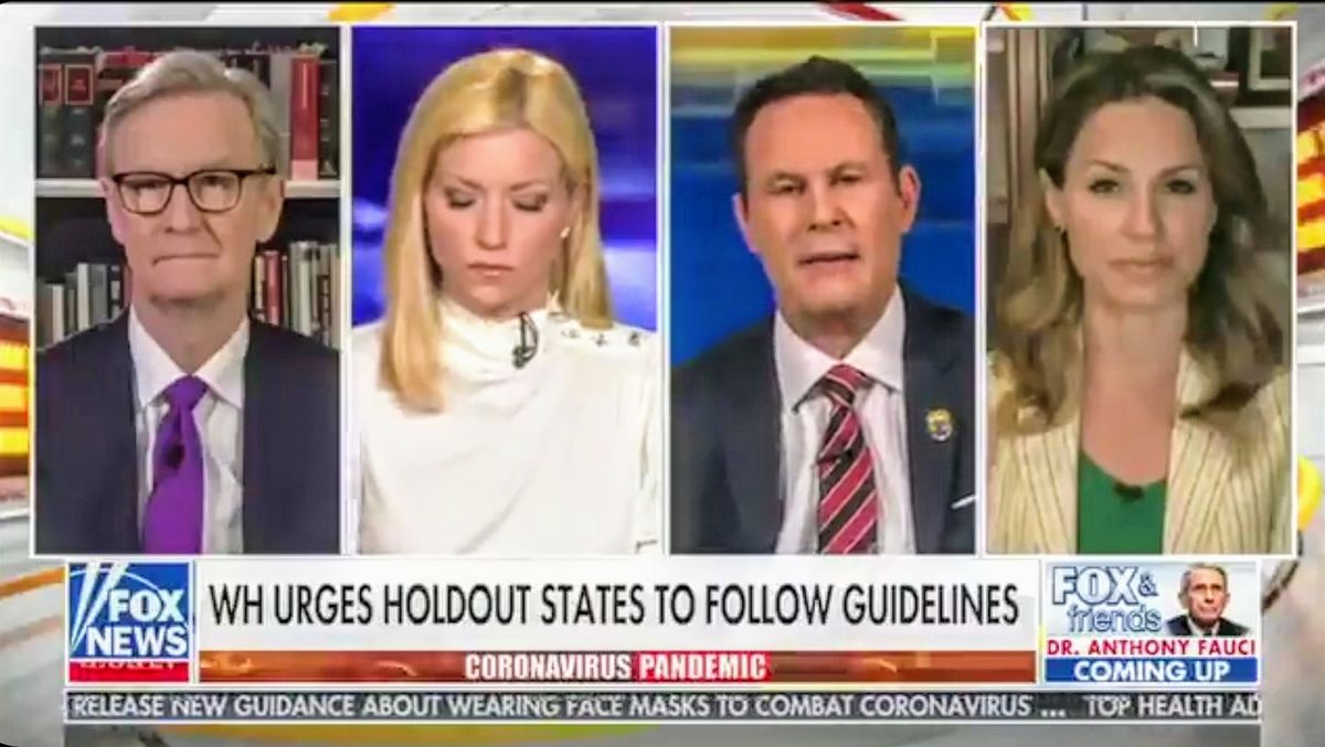 Fox & Friends host Brian Kilmeade backed the decision of one of those governors, Alabama's Kay Ivey. Kilmeade claimed stay at home orders should only be employed when states were at crisis levels.