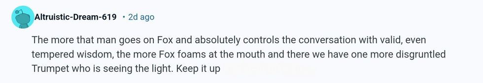 "Like it’s all well and good for me to keep going on Fox News, and I will. Although they don’t seem to be inviting me as much lately."