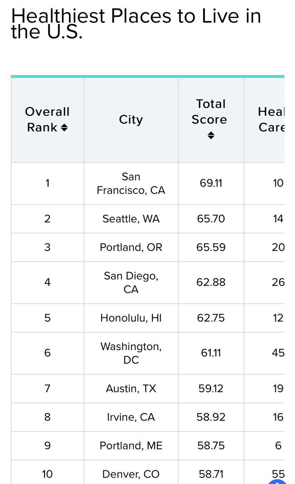 As seen below in the screenshot @Acyn included, the cities cited on Fox's map are actually the top 10 healthiest in the U.S.