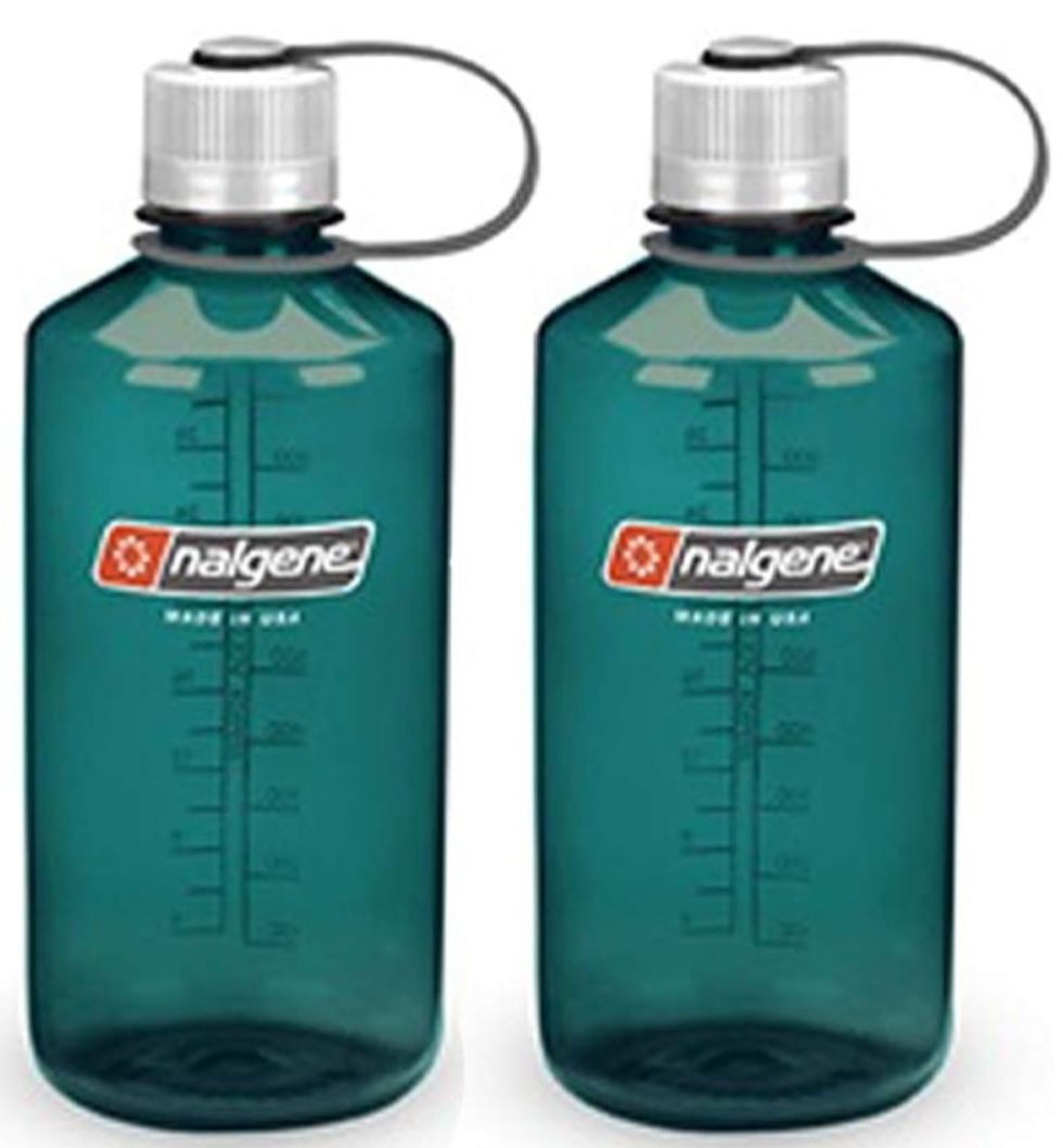 Get your own pair of 32oz. Nalgene water bottles here, with a small mouth for easier drinking without spills.