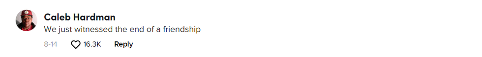 What's concerning is the woman's confession includes the word "boyfriend" rather than "ex-boyfriend," which led viewers to wonder if they were looking at the end of a relationship and a friendship in that moment, or if the friend had just wrecked her friendship over an already ended relationship, on camera, just for entertainment's sake.