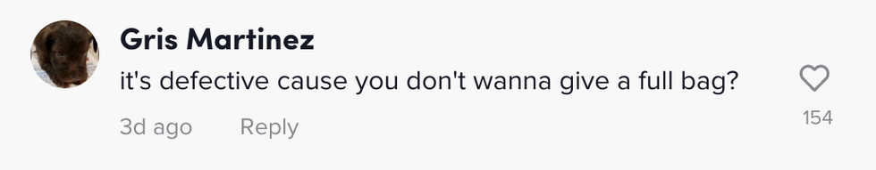 The video left viewers somewhat confused, with many expressing how they think all bags should be "defective", and have more chips than air in them.