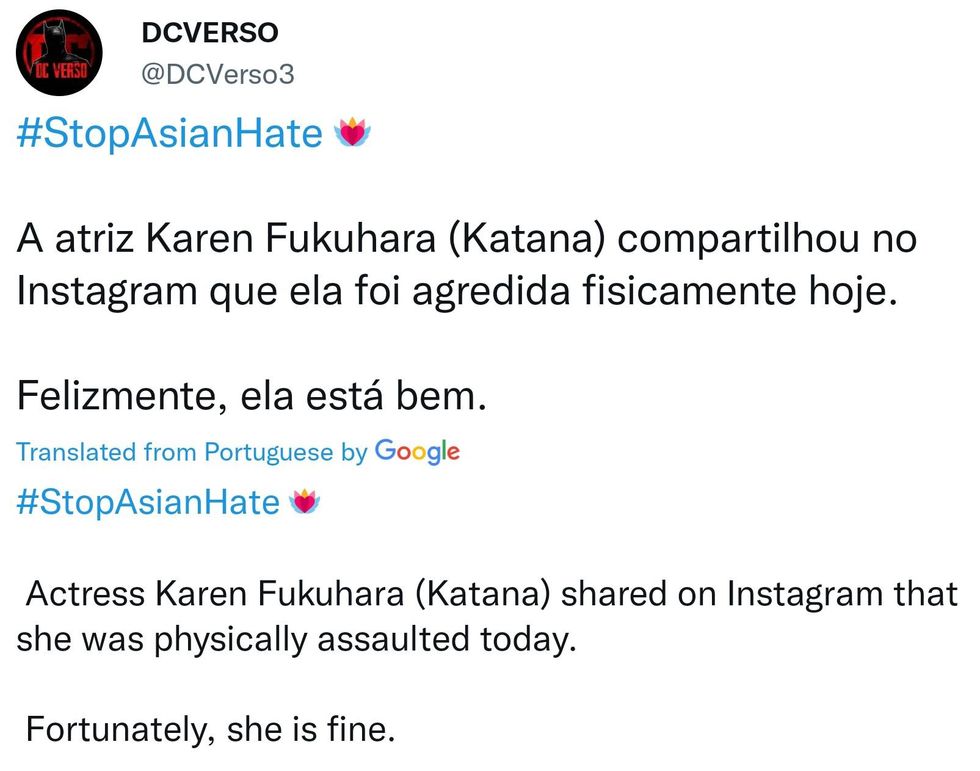Japanese-American actress Karen Fukuhara just posted that she got attacked today. She didn't say where, but it was in the US. \n\nOver and over again, this has been happening in the US, complete unprovoked attacks on Asians, particular East Asians.pic.twitter.com/LSLdBBItiV— ben (@ben) 1647530436