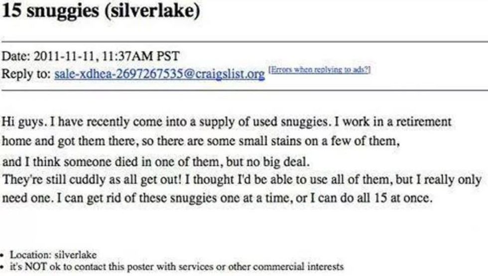 It’s an absurd world out there and, somehow, all of that absurdity winds up on Craigslist at one point or another. If you don’t have the time to browse the many sections and subsections of one of the leading classified websites in search of pure internet gold, here is a list of the funniest advertisements that you’re missing out on.