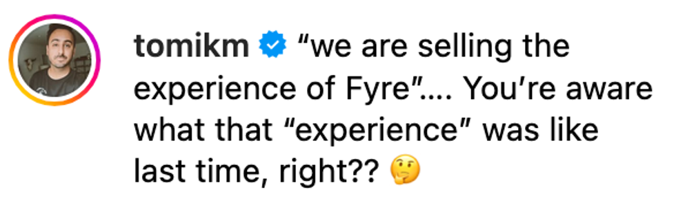 If anyone is planning on going to Fyre II, we'd love to hear all about it from the comfort of our homes.