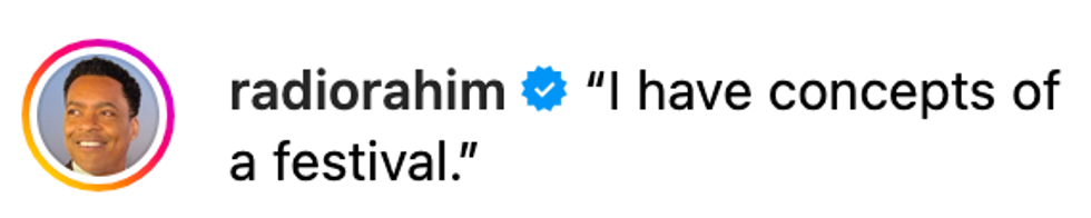 When asked if there were any music artists "locked in," he claimed he had two already booked but wasn't allowed to reveal the names of those artists at this time.