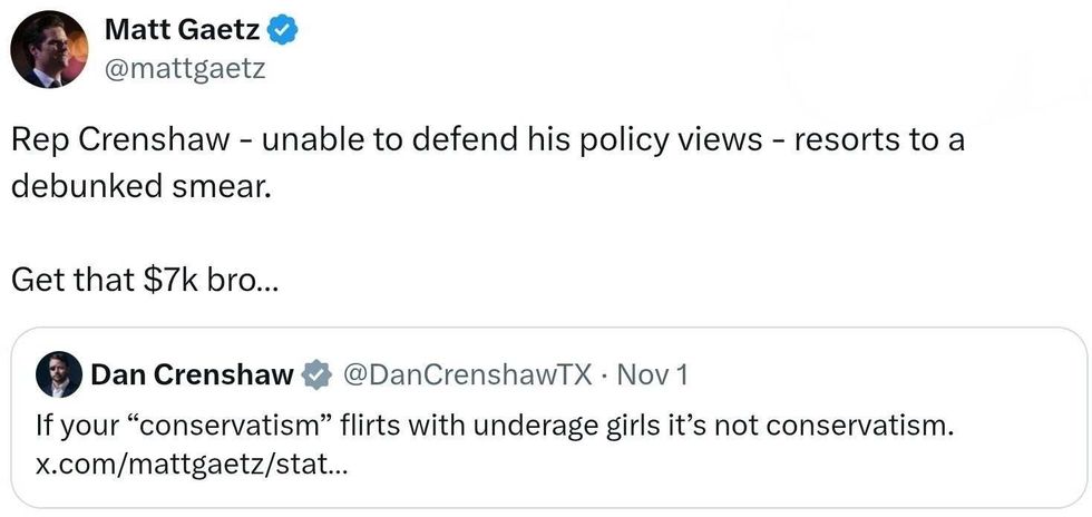 "Rep Crenshaw — unable to defend his policy views — resorts to a debunked smear."