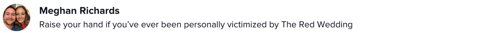 \u201cI\u2019ll never forget the day I watched the red wedding. I just had to go to bed with nothing but my thoughts and prayers for the Stark family \ud83e\udd72\u201d— Se\u00f1or Mal Tercio (@Se\u00f1or Mal Tercio) 1677155507