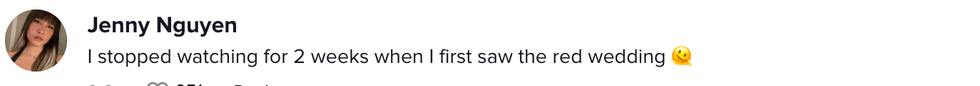 The video, captioned, "POV: you watch The Red Wedding in GoT for the first time," can be viewed below.