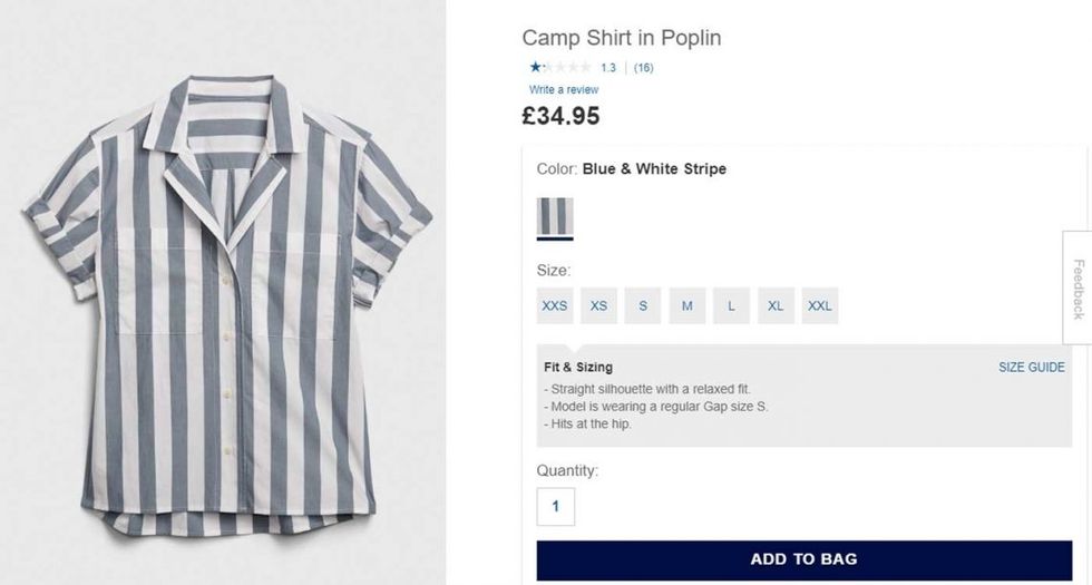 Shortly after this was pointed out online, many Gap websites changed the name from "camp shirt" to "striped shirt" but it's still not a great look.