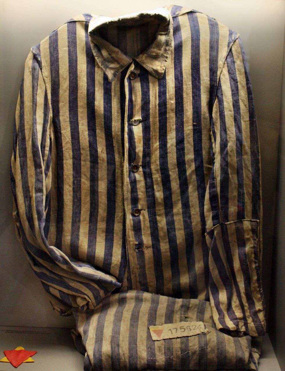 And here's an image of a shirt from the uniforms prisoners had to wear in Auschwitz for comparison.