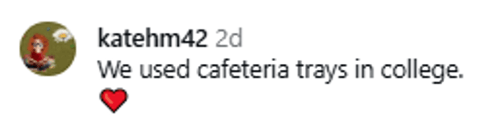 Some recalled their own attempts at sledding with household items. Not all of these options are the safest, technically, but the point really is to ride on something that you can stay on and that will improve your speed. Sometimes, tumbling off and laughing about it later is the best part of the memory!