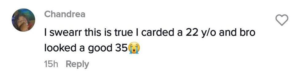 There's this trope we see in movies and TV all the time where a person, usually a woman, gets carded to buy alcohol and the audience is supposed to understand this as happening because she looks too young to buy alcohol legally.