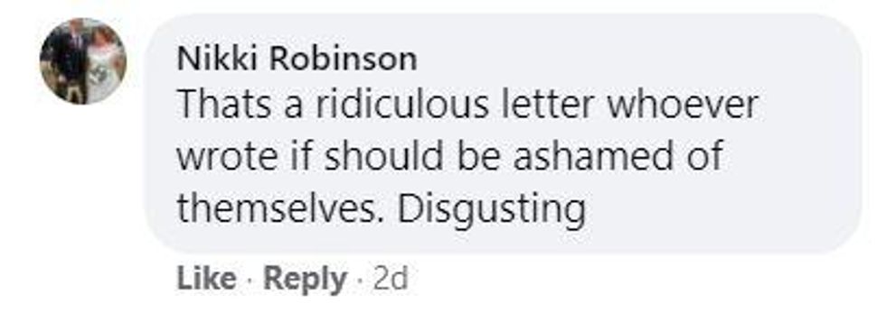 "I think whoever wrote this appalling letter is so insensitive! They need to think about your feelings."