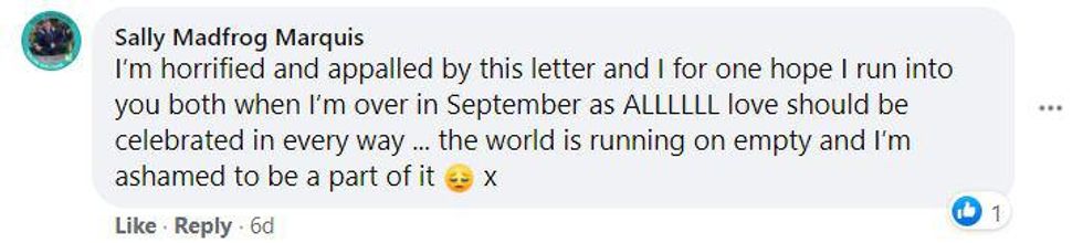 The organization Liberate also shared the post and said to the homophobic anonymous letter writer: