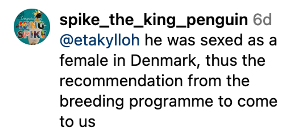 Alistair Keen, Birdland’s head-keeper, said Magnus' gender presented "another unique hurdle" in achieving success with Birdland's population management goals since Bill is the only female penguin in the colony. Incidentally, Bill was also initially misgendered, as staffers erroneously believed she was male.