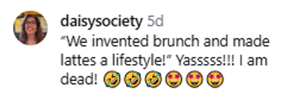 "I said. ‘Darling, people like me? We invented brunch. We made lattés a lifestyle, and we can drag this out as long as we want.’"