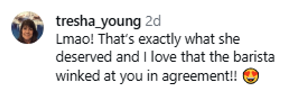 "I was like, hell no. I turned around, slowly and dramatically, and told her, ‘Sweetheart, this is a coffee shop, not the 'Hunger Games.' You’ll survive the extra 30 seconds it takes for me to order foam.'"