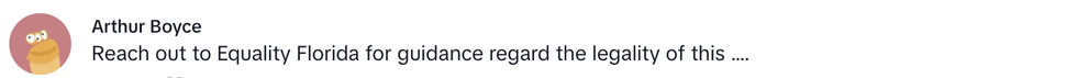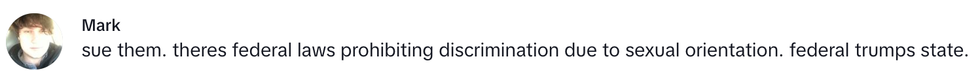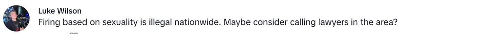 And although Florida does not have an employment law protecting LGBTQ+ workers agains discrimination (shocker), many viewers urged the TikToker to take action as discrimination on the basis of sexual orientation is illegal on a federal level.