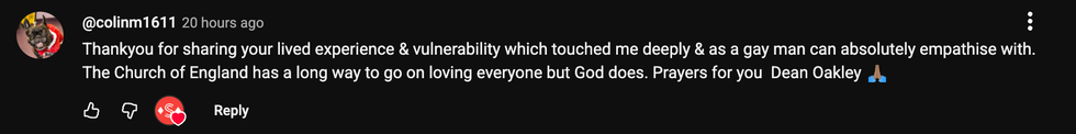 "Of course, add to this that we are not allowed to marry same-sex couples here in church, and no bishop has ever been transparently appointed in a civil partnership—it is hard not to conclude that the Church of England is still homophobic and does not believe in the equality of love.”