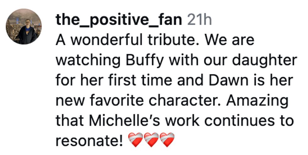 And on the one-year anniversary of her tragic death, Buffy herself Sarah Michelle Gellar posted a heartfelt tribute to her friend and colleague that has touched many fans.