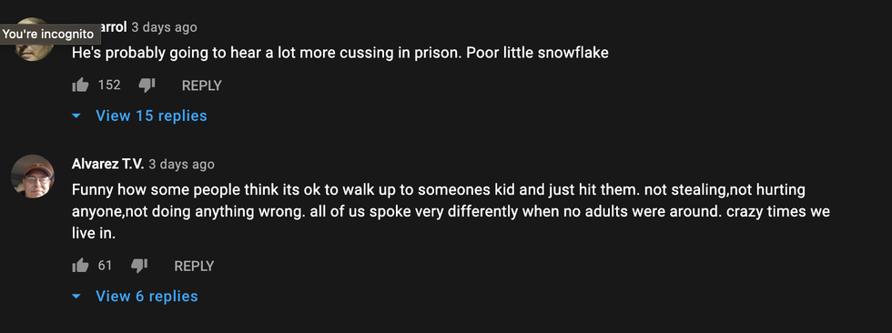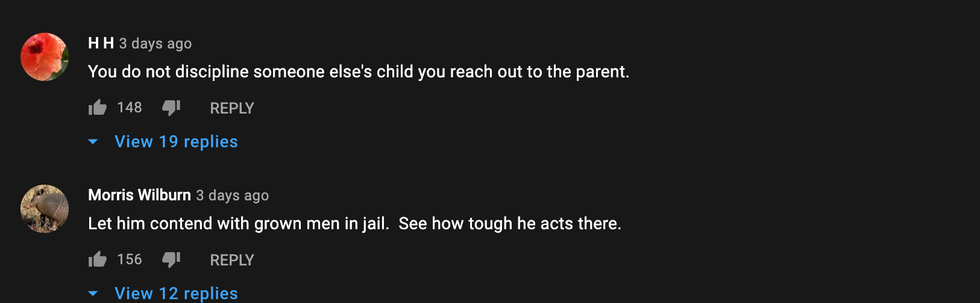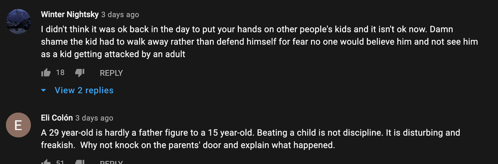 Several of the comments expressed disappointment—if not utter horror—Martel thought using physical violence against someone else's child on someone else's property was appropriate in this day and age.