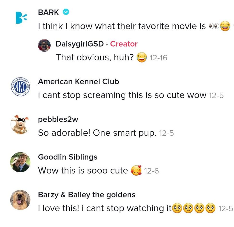 The pup's account describes her as "demands tickles 24/7" and "movie critic."