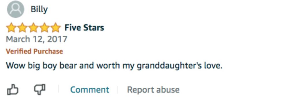 You are thinking of buying a giant teddy bear to give someone special for the holidays, and so you jump on Amazon to have a look around. You find a 6.5-foot-tall Giant Teddy Bear made by Joyfay, selling for $110. Maybe you think this is just what you are looking for, at a great price. The description seems innocent enough: