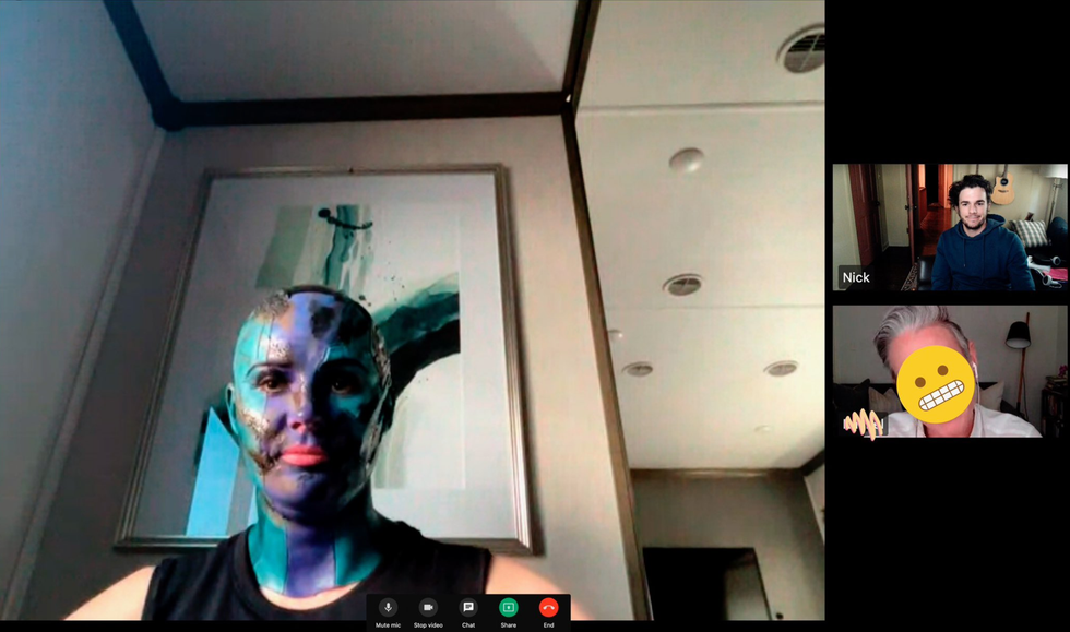 The screenshot showed Gillan in all her Nebu-tastic blue and purple makeup with red lipstick and her hair tightly concealed by a darkened skull cap.