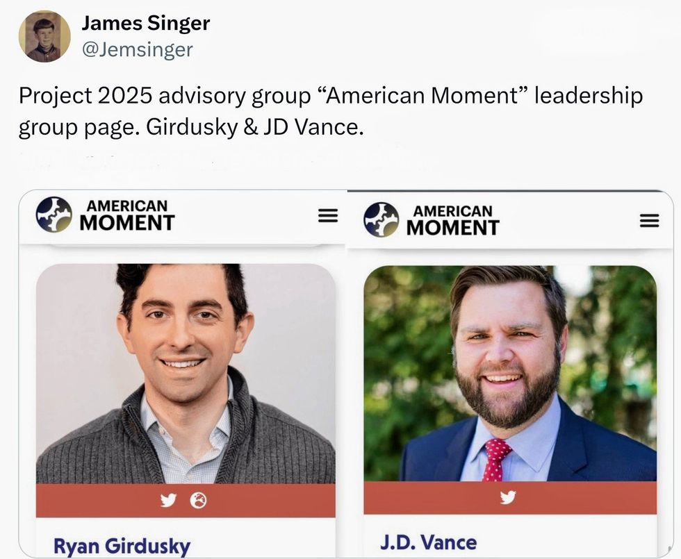 Girdusky's ties to Republican vice presidential candidate J.D. Vance were quickly exposed on X.