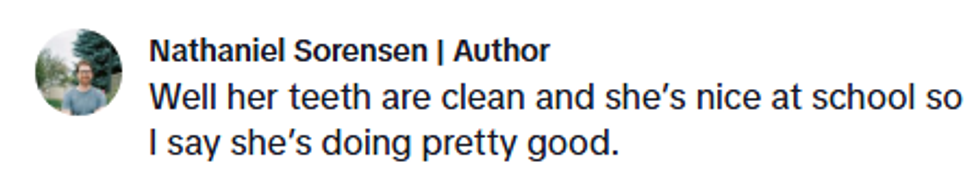 At the end of the day, the TikToker's daughter was choosing to be kind at school and to eat and brush her teeth, which are technically far more important than a swear in the morning.