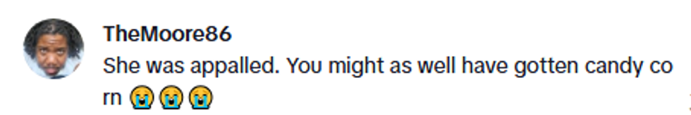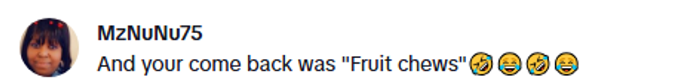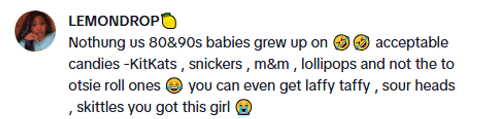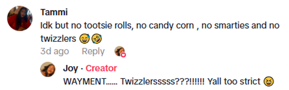 The TikToker asked her to wait for a moment while she grabbed a small bowl she had in her home, filled with Tootsie Rolls, and with the backup plan of "fruit chews."