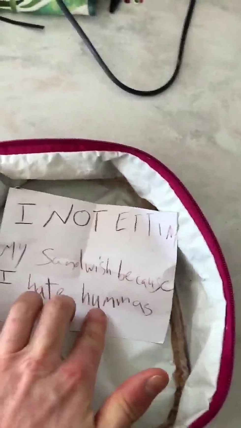 This is the brilliant note a sassy seven-year-old schoolgirl left for her dad in her lunchbox – telling him "I not etting my sandwish because I hate hummas."