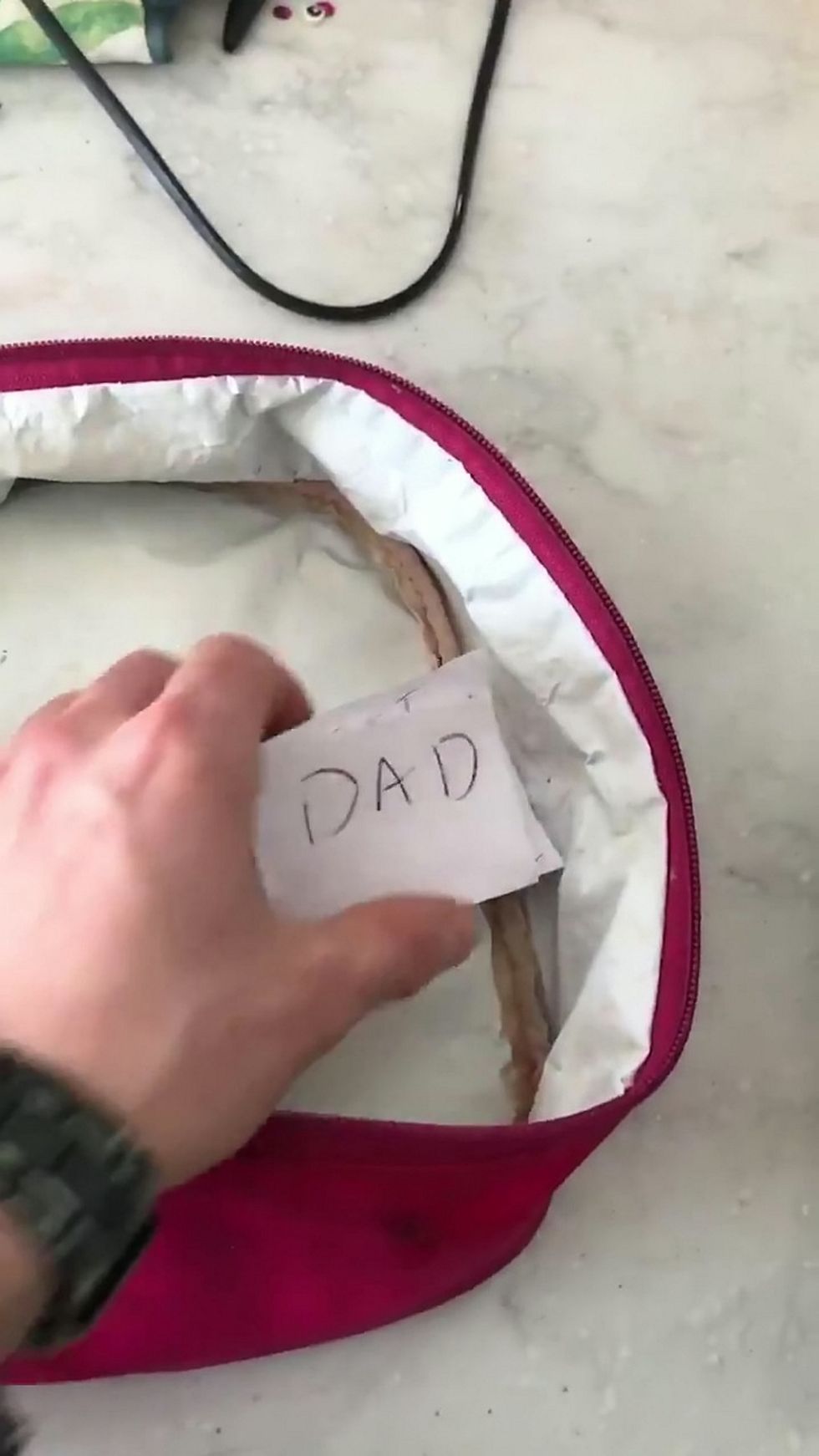 She told him she'd left a note in her lunchbox - and he thought it might be a cute thank you note, or a lovely drawing.