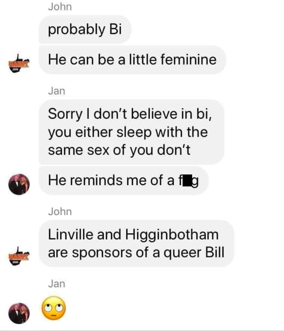 He also mocked a piece of legislation by referring to it as the "queer bill" and speculated about the sexuality of another lawmaker because he was "a little feminine."