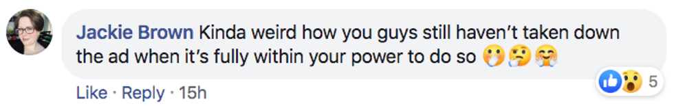 "No one in my organization would ever approve the ad they released. It's complete incompetence on their part which their company representative admits."