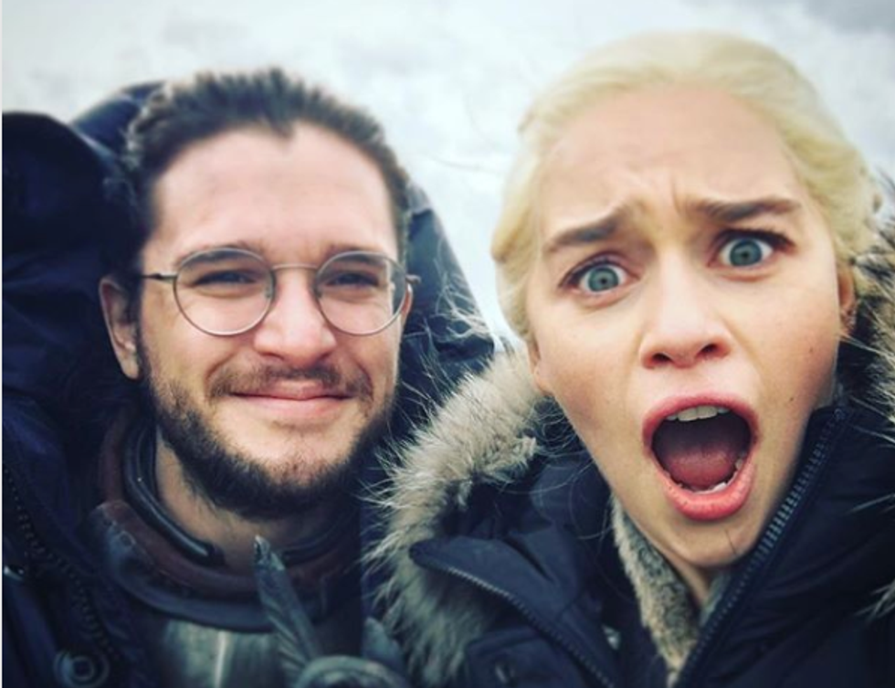 So in her effort to get Jon Snow to bend the knee, this past Sunday Emilia Clarke took her demand off-screen…to Instagram (hashtag game=on point.)
