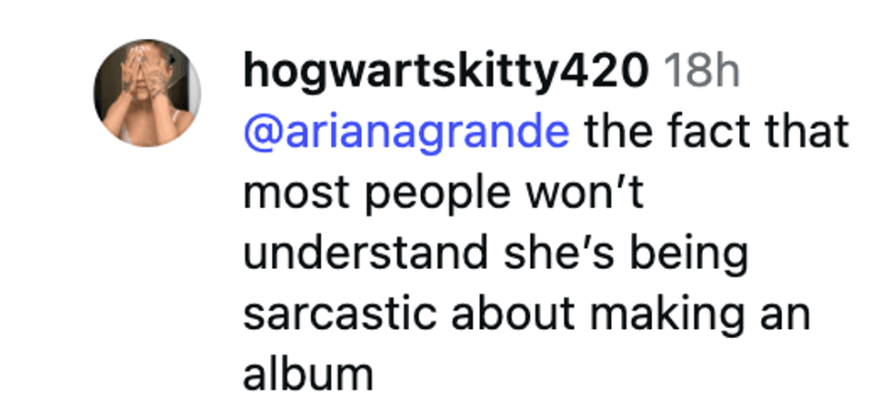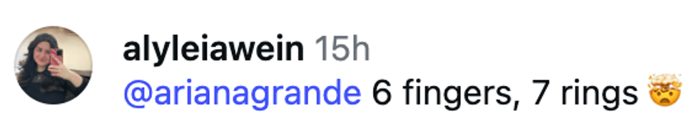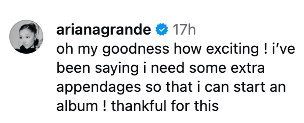 After initially remarking "holy sh*t" in reaction to ourpinkwitchh's post, Grande then took the AI mishap in stride, hinting that a sixth finger is something she's always wanted, and may come in handy down the line: