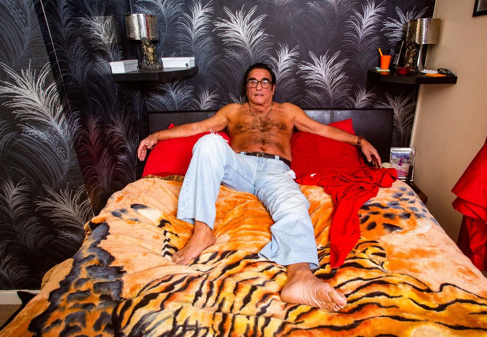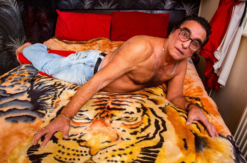 He revealed that a friend takes the photographs for him for the selling page, often posing on his staircase and on the tiger-print throw strewn across his bed.