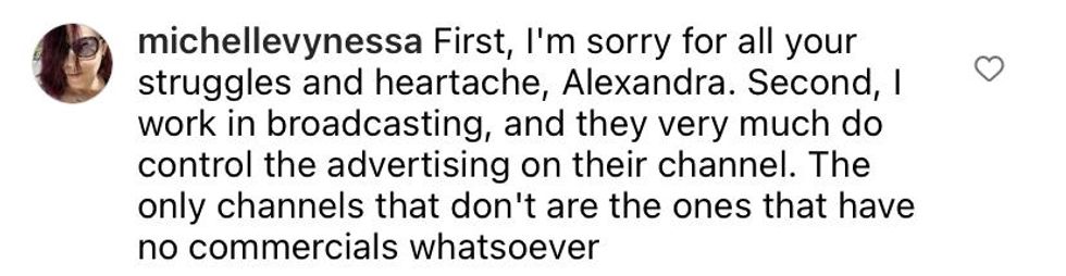"Unfortunately, we don't have any control over local commercials, and we sincerely apologize.'