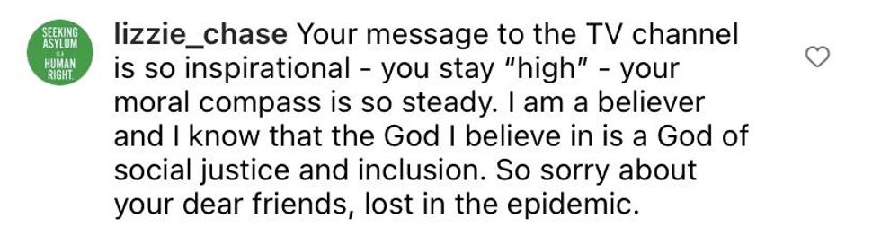 "And that as you continue to tell stories about love and tolerance, and the American family, that you allow everyone in to that divine space... and not just the humans you believe deserve to be there."