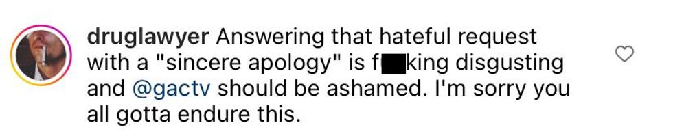 Pose and American Horror Story actor Alexandra Billings—who is transgender and living with HIV—posted a screenshot of the apology to her Instagram along with a note penned to GAF which uses @gactv on Instagram.