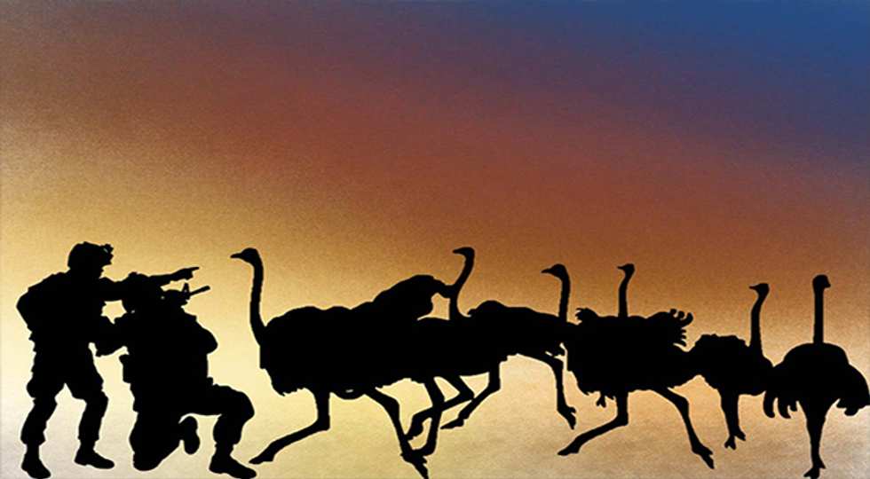 During the Great Emu War, the emu took cover in dense scrub brush and behind trees, where the soldiers couldn’t get a clean shot. A newspaper report on the war pointed out that the “emus soon began to improve their own understanding of the science of warfare.” The emus appeared to realize that if they stood just far enough away, the soldier’s guns were too inaccurate to hit them.