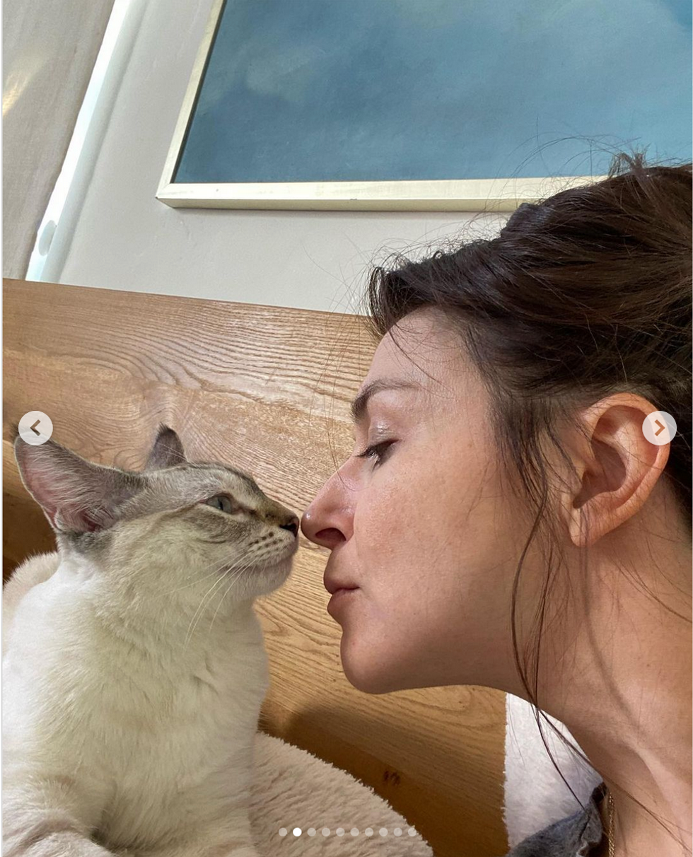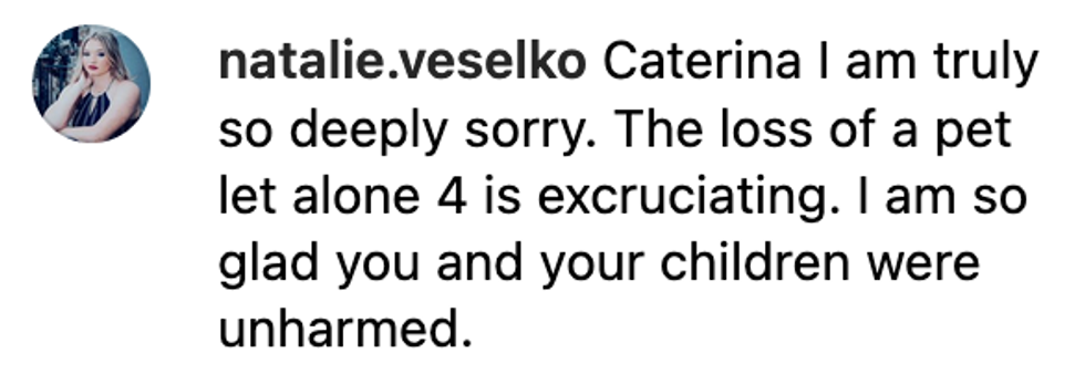 Her Instagram post was accompanied by a carousel of photos including what little remained of her home and of the beloved pets she lost in the fire.