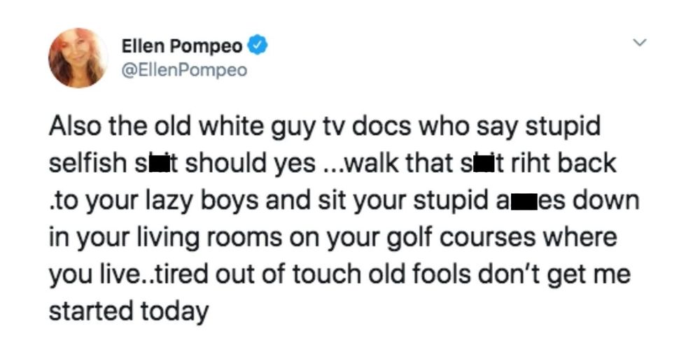 Ellen Pompeo is out of patience, out of time and out of f**ks for these little TV "doctors."