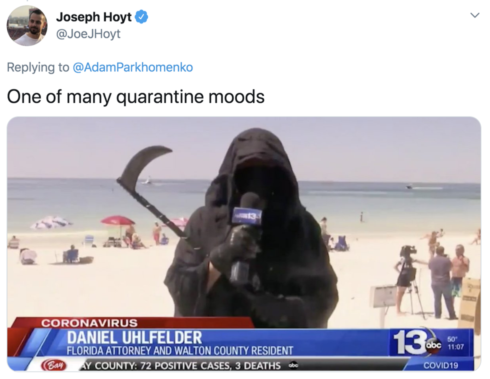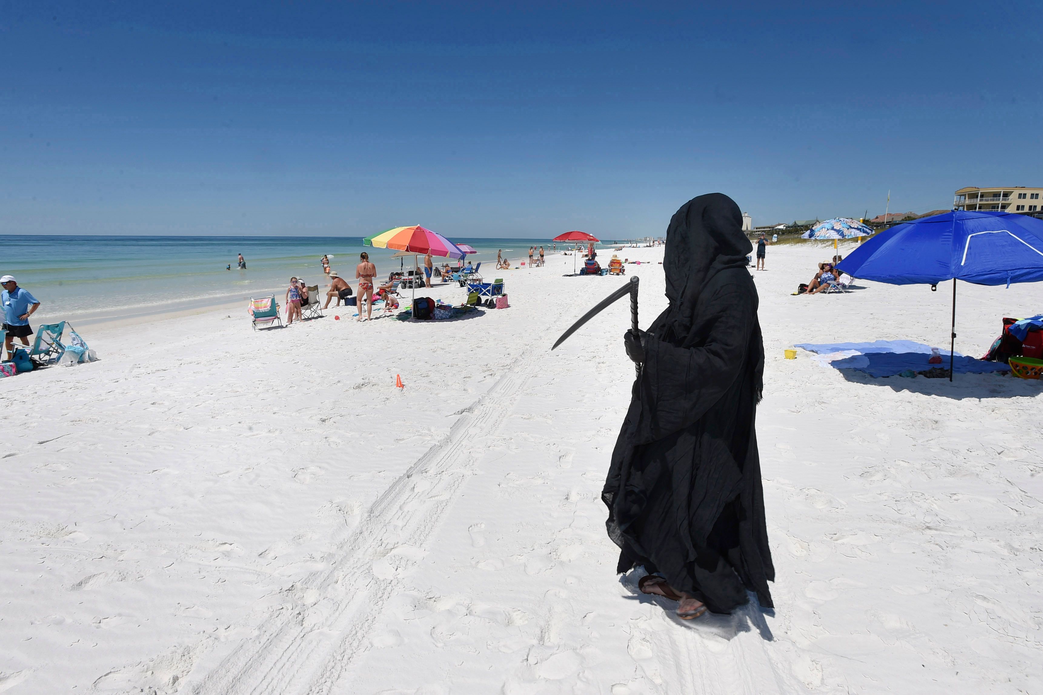 Daniel Uhlfelder, a US lawyer has gone viral after dressing as the grim reaper to protest against the reopening of beaches amidst the pandemic.