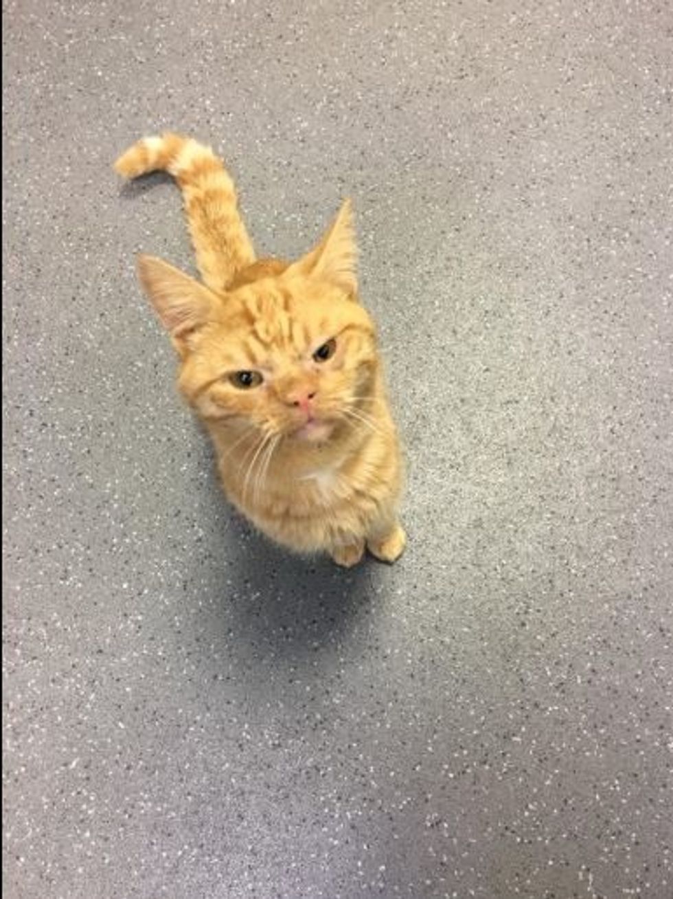 Something tells us it won't be long until Crabby Cat finds a forever home.