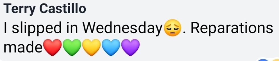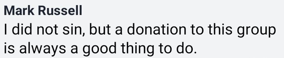 "If you want to make reparations for this, we are happily accepting confessions & donations below. Turn that waffle fry guilt into curricula or scholarships for LGBTQ+ youth! 🏳️🌈⤵️ "